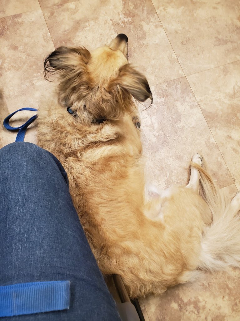 Tango and I worked on something new tonight. Middle. Middle is something you would use if you wanted to do agility with your dog, and I would love to get Tango into that eventually but you can also do this with a dog that needs some confidence and security. I haven’t actually introduced the word “middle” yet because when teaching any new command, your dog has no idea what you’re asking when you say “sit” so we practice by luring. You can see he isn’t too sure about it at first by the fact that he bounces right back out from between my legs but he does start to give me some duration towards the end. I also add the focus cue to get eyes on me and off the food. How this can help an anxious dog is when you’re in public, getting your dog in a down in middle can help them feel more secure in an unfamiliar setting and can also prevent those unwanted hands from reaching out and touching your dog. Don’t mind the end lol.. I’ve been working on luring Tango into the seated heel position and have been unsuccessful in those attempts thus far but we will keep trying!