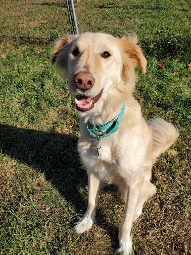 Benny came to us as a foster in February 2020 after doing 6 weeks at a board and train when his original owner decided to rehome him. Benny was born in Kuwait and Puppy Rescue Mission brought him and his litter over when they were 4 months old. After proving to be too much for his family and biting the kids and mom a few times, they decided it was best to rehome him. PRM helped by funding training and then he came to me as a foster. His dashing good looks made him deceiving and everyone who applied for him expected that they would be getting a golden retriever. They would not be. Benny struggles very much with meeting new people and even after almost a year, he still has no human friends outside me and my husband. After coming to the realization that I did not feel he was safely adoptable, we decided to formally adopt him in June 2020. He is, by far, my most difficult dog but, we are working through the challenges and he has been showing me, ever so slightly, that my hard work is paying off.